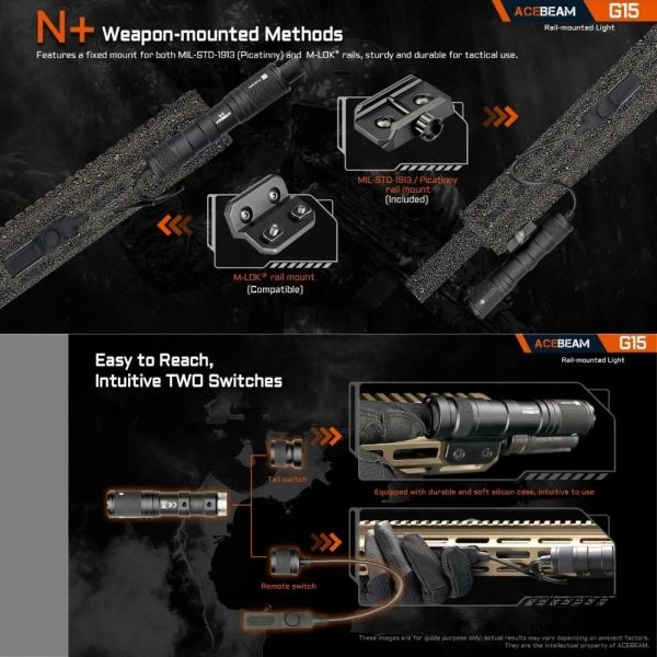 【即將到貨】ACEBEAM G15 1800流明 390米 強光戰術軌道燈 皮卡汀尼 戰術尾按 遠程開關